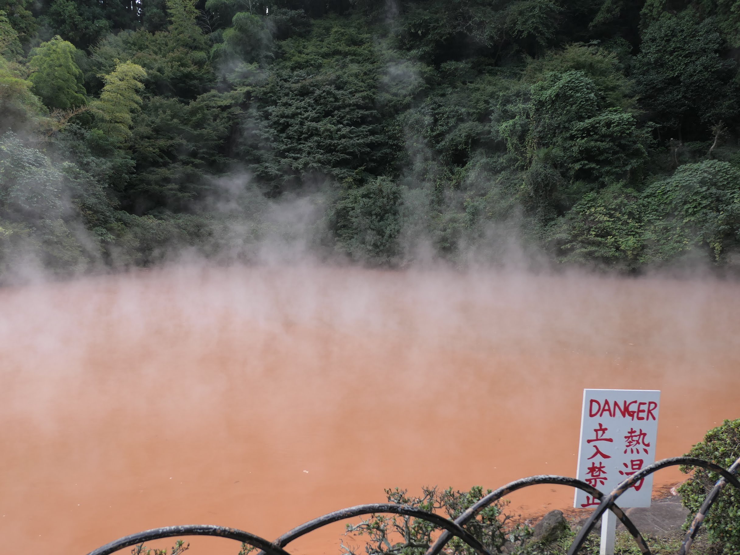 피의 연못이라는 뜻의 지노이케 지옥(血の池地獄, Chinoike Jigoku)은 붉은 점토 때문에 물 전체가 붉다.
