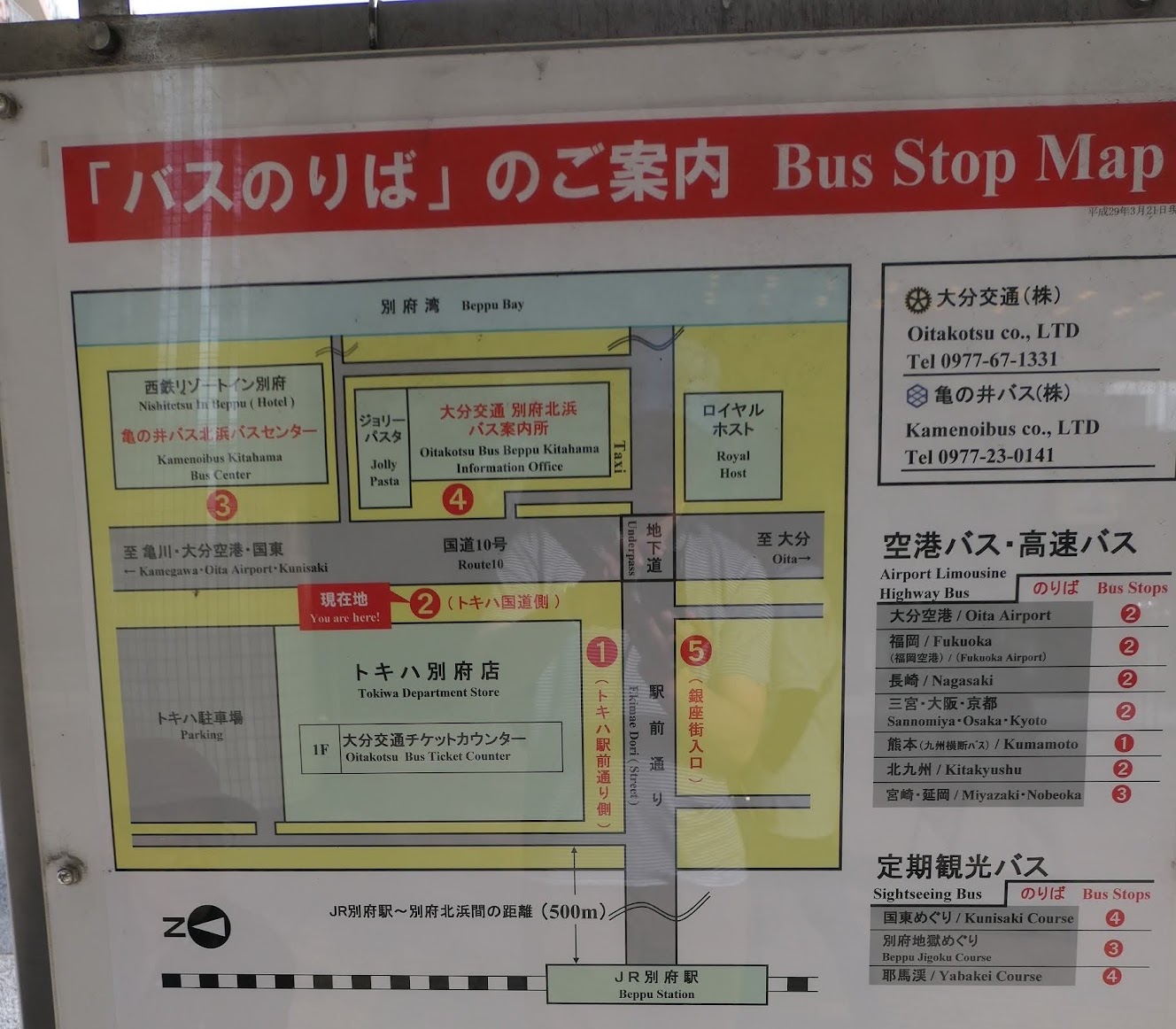 벳푸 여행의 시작은 기타하마(北浜, Kitahama) 토키와 백화점(トキハ別府店) 앞 정류장에서 시작한다.