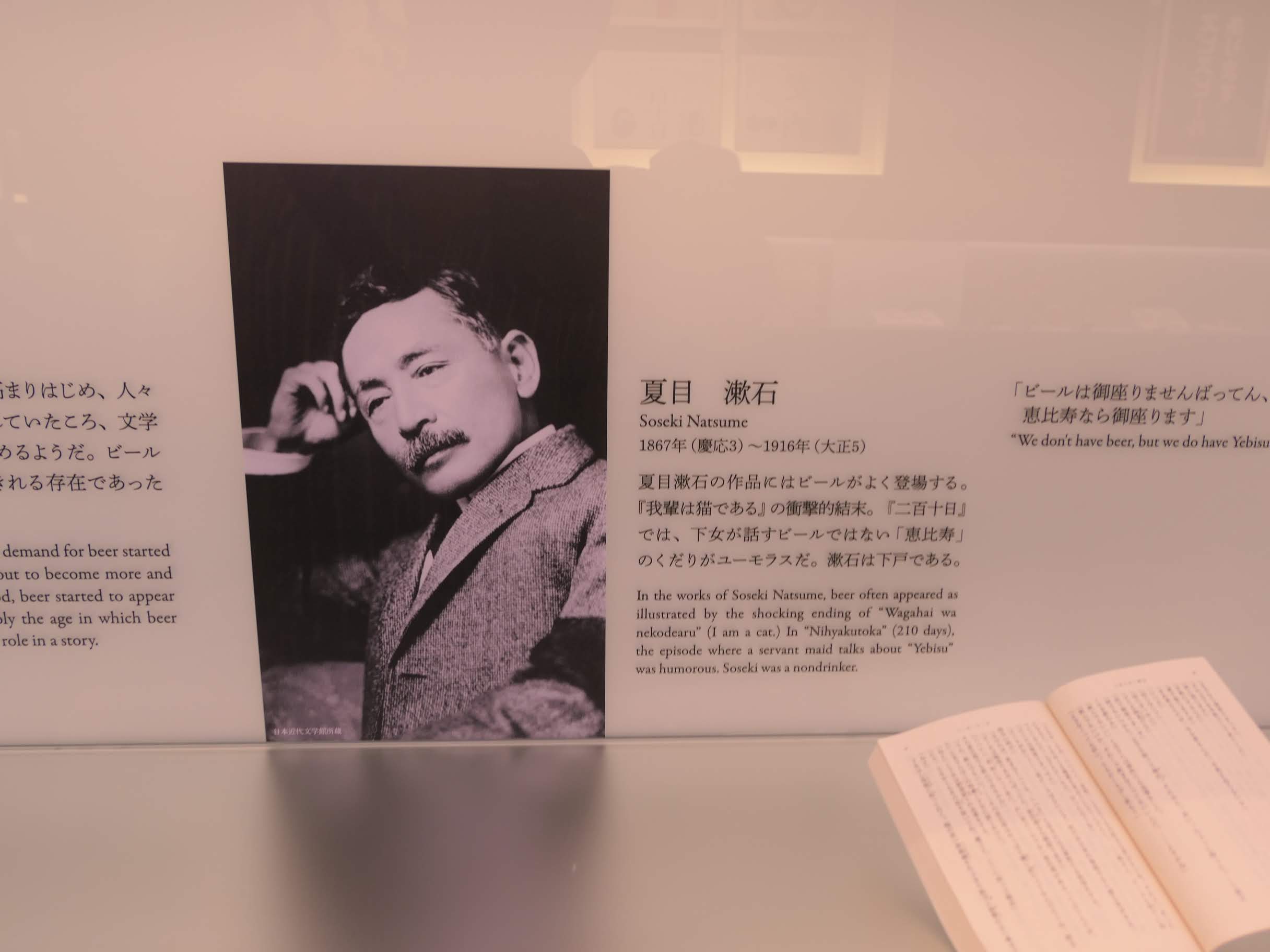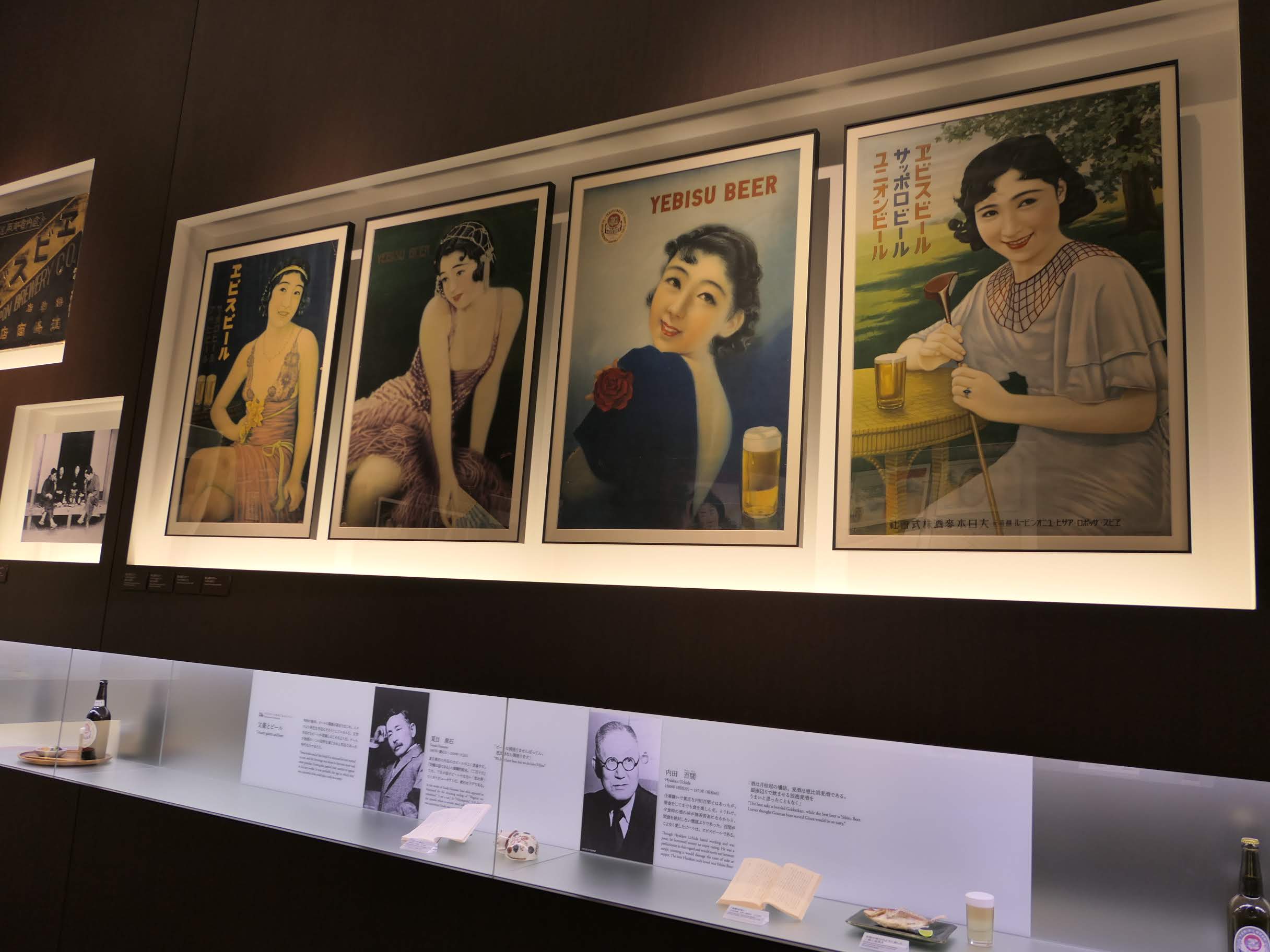 기품있게 맥주가 등장하는 포스터와 함께 에비스 맥주와 관계있는 작가들의 이야기가 전시되어 있다.