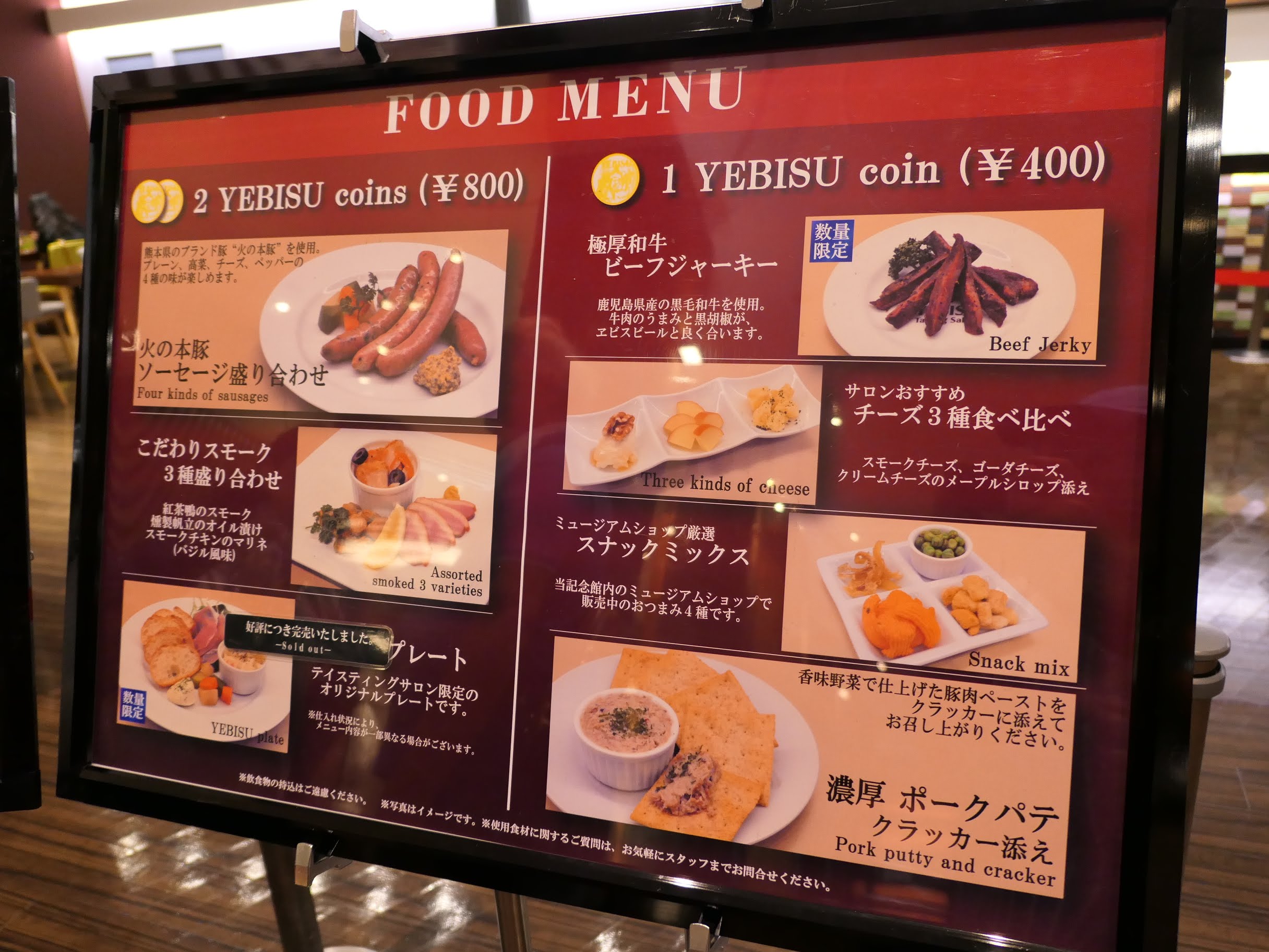 에비스 맥주 기념과 한쪽에서는 각종 안주와 함께 에비스 맥주를 먹을 수 있는 홀이 있다.